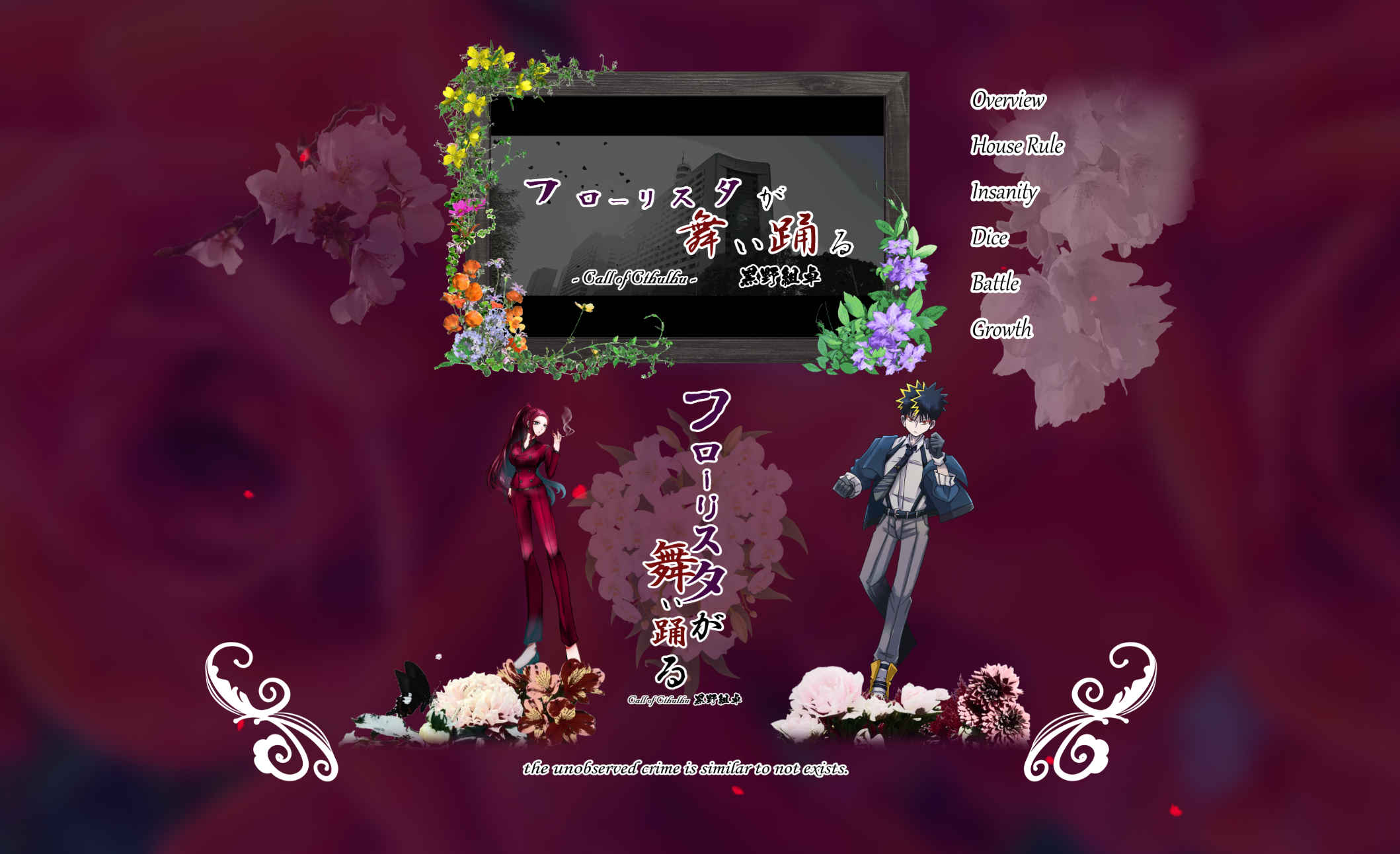 2025/11/12 卓報告 Call of Cthulhu「フローリスタが舞い踊る」 KP :黒野すらるさん PC1:緋神妃斬 / SCさん PC2:土雷穂摘 / ヨズト 2025/11/11~2025/11/19(全4回) 探索者全員生還 #ほずみ #フローリスタ 閲覧注意 セッションのフルネーム 「黒野組卓 フローリスタが舞い踊る 第二陣 ~夢のクリスタライザーが導く庭師別陣HO1HO3の邂逅」~ 特に導入などいっぱい改変して楽しませてもらいました!! 我ら庭師IF、期間限定緋神班!! …ひ、シナリオに関係のないLOSTモブが出てる!!thanks!