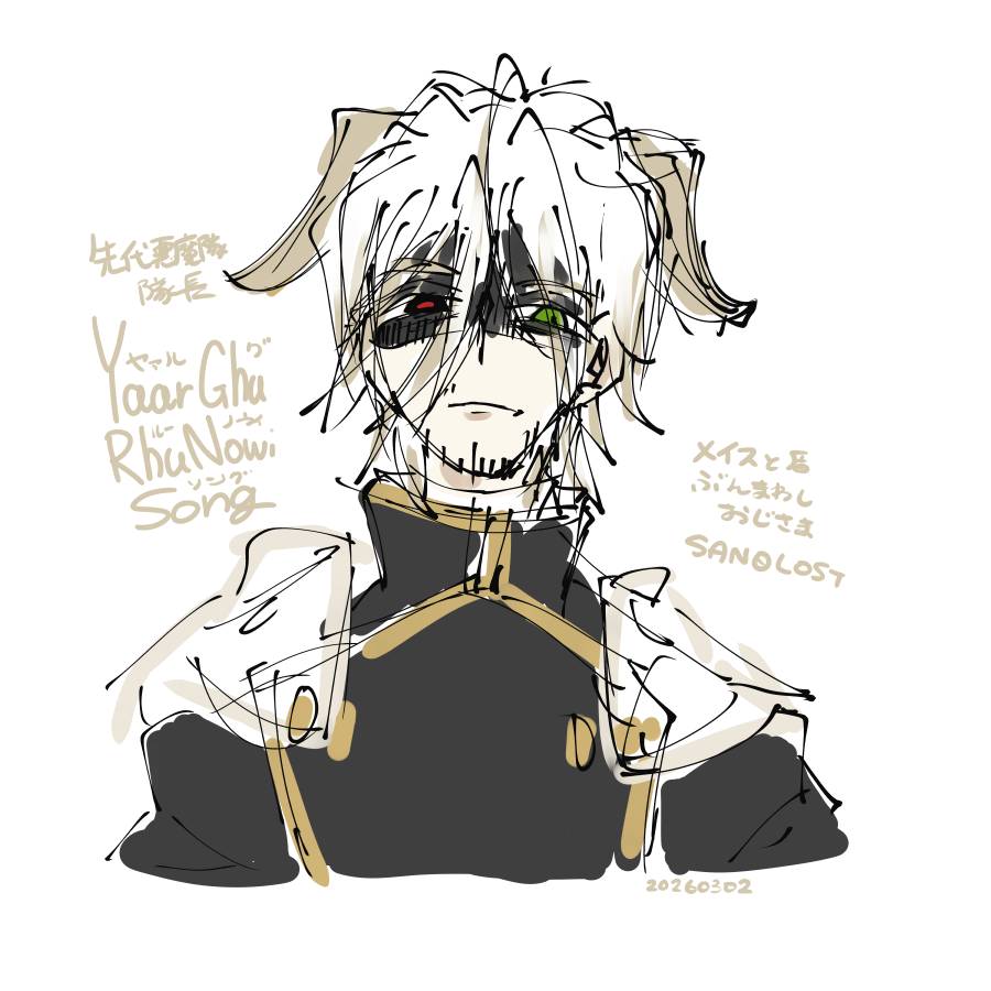 2026/03/12 設定メモ #ゴダキュア班 #ユリオ GODARCA 独自設定の話 独自設定注意 ---------- 先代隊長とか、副隊長の絵 作者さまのシナリオ設定とは異なる箇所も含みます 悪魔隊の仕事は人事(スカウト) 平時は隊長格も働いている。戦闘のみの象徴的存在ではない。 ■先代隊長 ヤァル・グ・ルーノウィ・ソング(Yaar・Ghu・RhuNowi・Song)男/死亡済 ■副隊長 イールド・ハート(Yield・Hart)男/隊員0にならなかったので生存してる設定 ■悪魔隊はノリが軽いぞ! thanks!