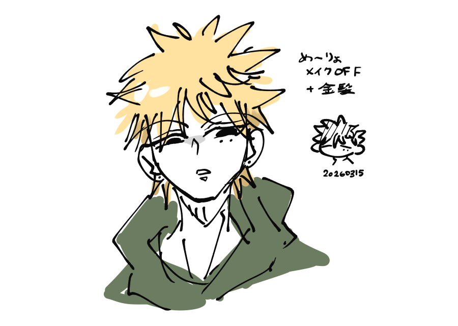 2026/03/16 設定メモ #め~りょ #ワンここ 金髪似合わないからインナーカラーにした メイクOFFめ~りょ金髪ver ほんとうに似合わないほんとうに 反抗期全力顔させてみた ちなみに本当に染めると実家からこぶしが飛んでくる