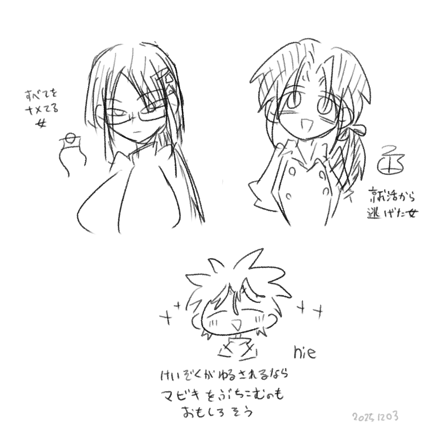 2025/12/03 設定メモ #裏4 #マビキ #カナデ 裏裏裏裏に行くならどういうキャラにする~!?のネタ出し HOにあわせてそこに居そうな事情にあわせてる マビキもいいかもっと思ったけど、死ぬと警告をもらった