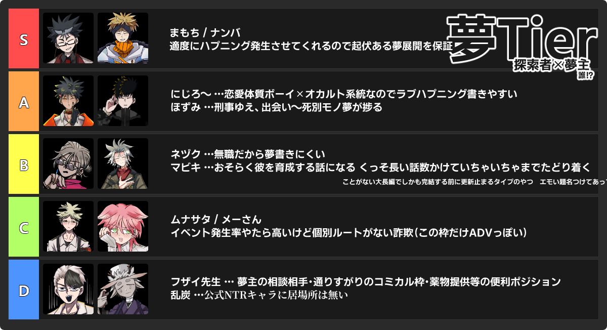 2025/11/22 テンプレ #1114夢 夢Tier 夢ぜんぜん書けるわ! #もちゆき #ナンバ 適正あるわ! #にじろ~ #ほずみ 難あるわ #ネヅク #マビキ 思わせぶりだわ #ムナサタ #め~りょ ダメだわ #フザイ #ランタン