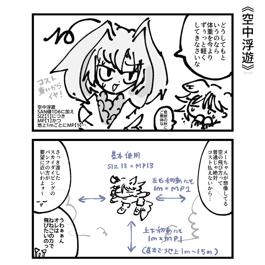 2025/10/30 自陣 #漫画 #メーサン #め~りょ ねねこさん呪文習得おめでとう! 空中浮遊やってーーーーー! ▶顧客が本当に必要だったもの 飛びたいんじゃなくて、空中でどうのこうのだろう?という感じで… 地面にも門つくってポータル化する案笑ってしまった 永遠に空を飛び続けるメーが!!