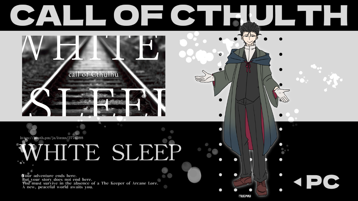 2025/06/30 卓報告 CoC「White Sleep」(KPレス) PC:二兎路千景 2025/06/30 【エンド:I】生還 / 探索者引退 #チカゲ #KPレス 曰く付きの骨董店のお店番に戻る。 宇宙的恐怖から逃れても、別の怪異が待っているという話。 →NEXT「貘厄庫のお店番」 閲覧注意 最後の最後でいい感じに終わってよかった…。 よき幕引き。五体満足、精神健全!お友達、また何処かで会おうね!thanks!